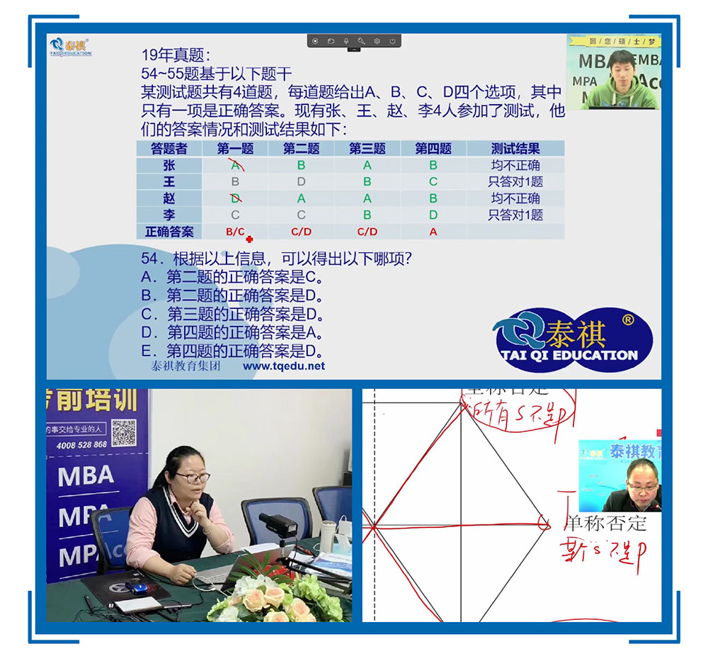 泰祺教育集团逻辑教研组组长宗为翰老师针对下一阶段逻辑讲义的修订、VIP 教学、直播课教学等方面提出了自己的建议和看法。他特别指出:“线上直播”与线下上课在互动方式上区别较大,为保证良好的教学效果,老师们要依据不同的课程安排及上课场景,合理把控与学员的互动方式和频次。